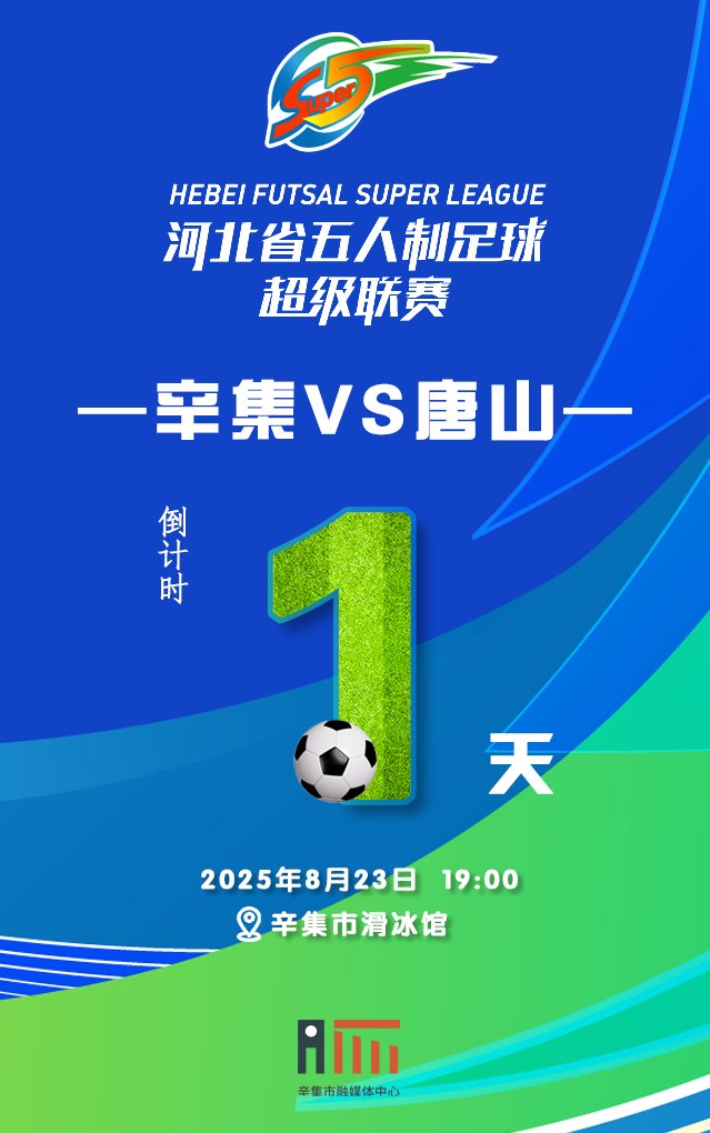 2025年河北省五人制足球超级联赛辛集主场首场比赛(辛集VS唐山)将于8月23日17:00开始检票,18:30检票完毕。场馆内机器人表演时间为17:30-18:30,球员热身时间为18:30-19:00,比赛于19:00正式开始,预计21:10结束。特别提醒,比赛开始30分钟后将停止入场,请大家合理安排时间。